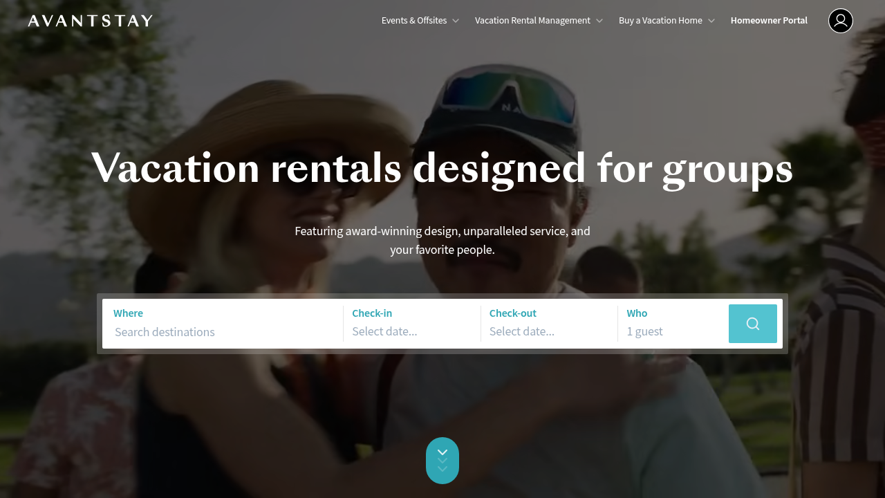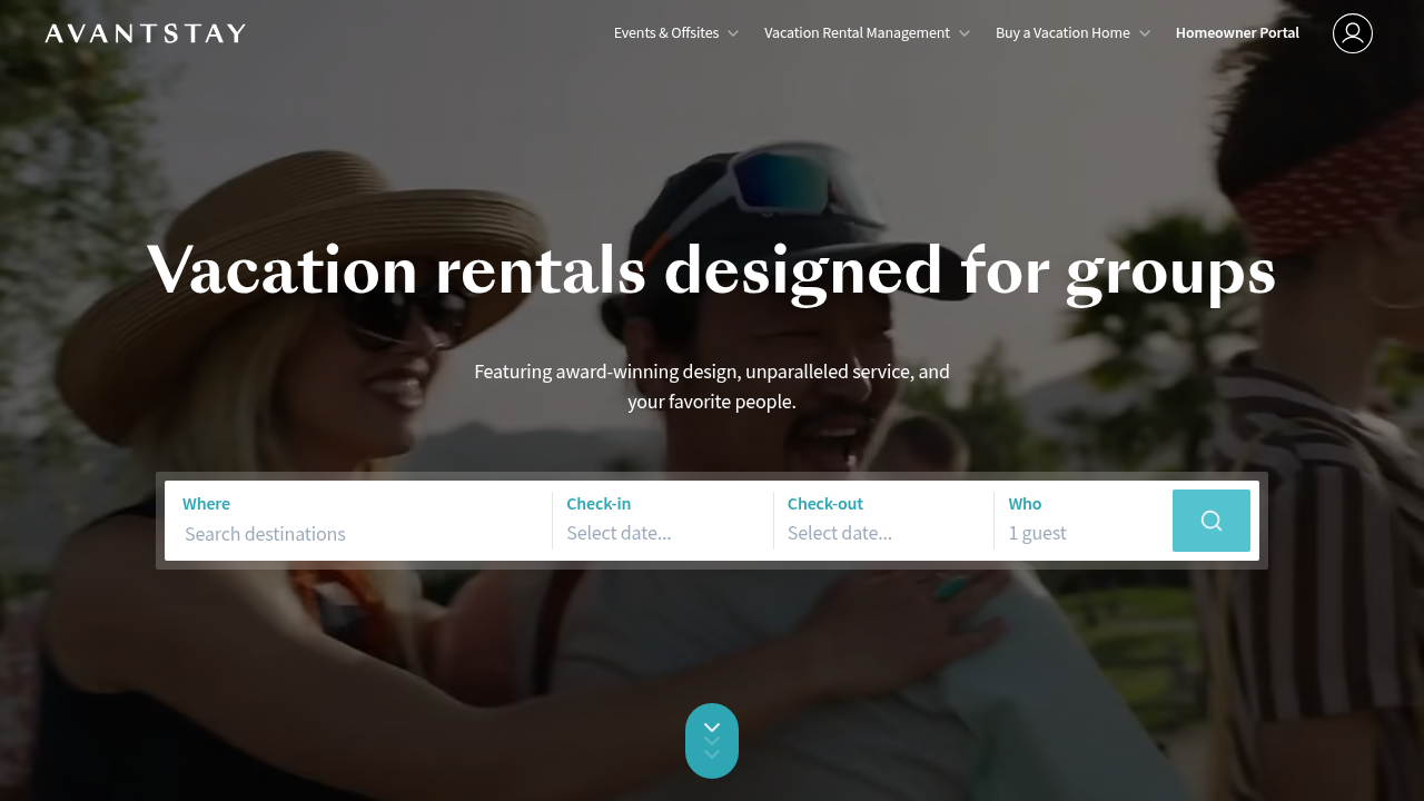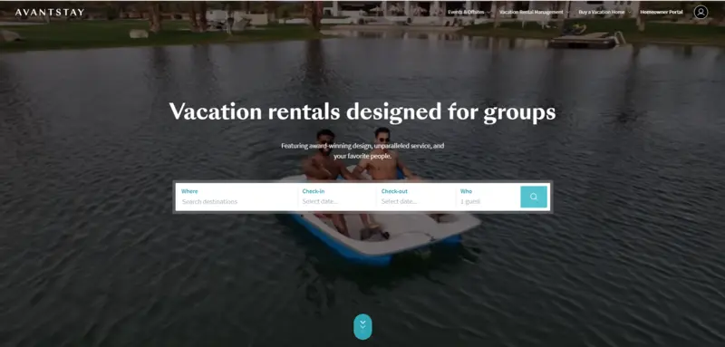 AvantStay manages 2,300+ luxury properties with award-winning design for groups of 8-20+ guests.