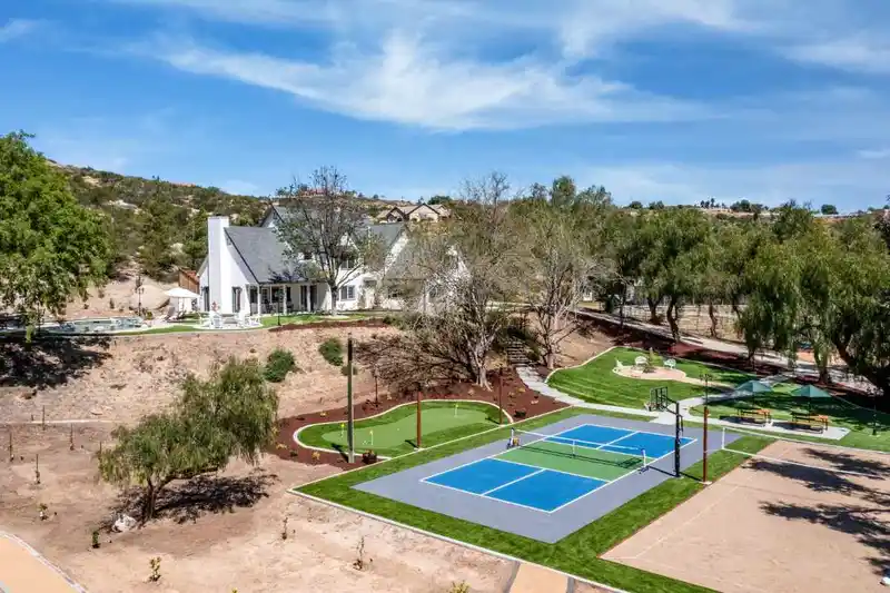 Pickleball courts, putting greens, bocce ball courts, and outdoor kitchens across 7 villas with pools and spas
