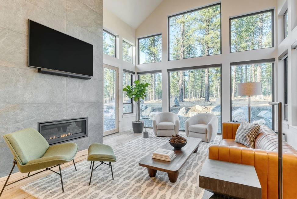 Trapper is a beautifully designed modern mountain retreat that perfectly balances contemporary elegance with rustic charm, making it a top contender for the Best Interior Design category. Featuring soaring cathedral ceilings, a dramatic wood-burning fireplace, and floor-to-ceiling windows that showcase breathtaking Sierra Mountain views, this multi-level home offers a seamless blend of luxury, comfort, and natural beauty.