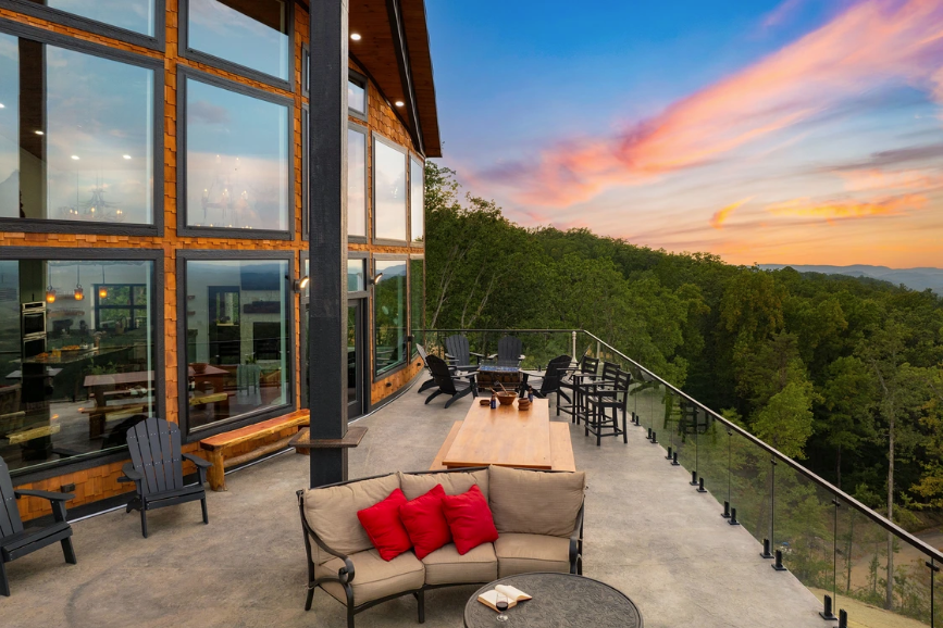 Pink Pines is the perfect bachelorette getaway, offering a chic pink-themed design, a private indoor pool, and a stunning Smoky Mountain backdrop for an unforgettable celebration. A top choice for the Best for Bachelorettes category, this vibrant retreat features a cozy firepit lounge, a private movie theater, arcade games, and a stylish bar area, making it the ultimate destination for a girls’ trip.