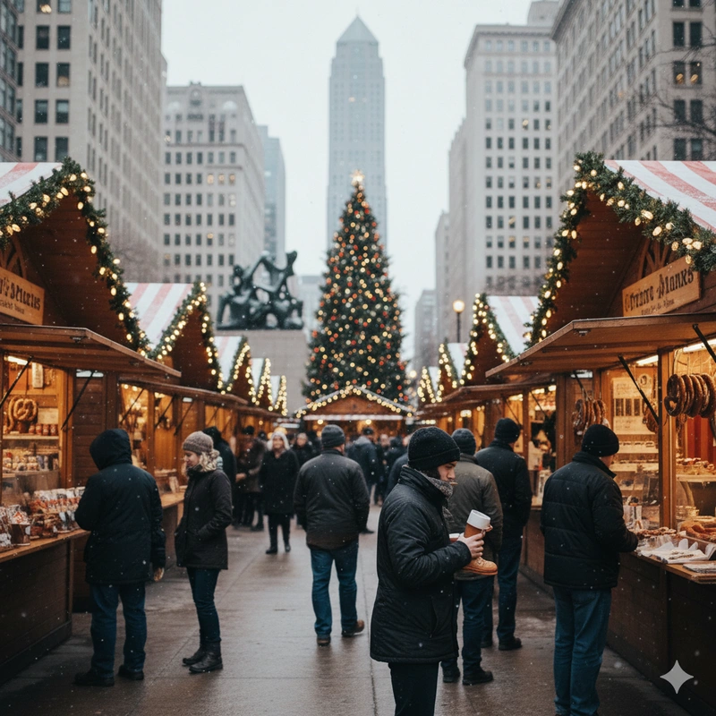 Chicago’s Christkindlmarket brings authentic German Christmas traditions to America, where wooden vendor huts fill Daley Plaza with Old World atmosphere.