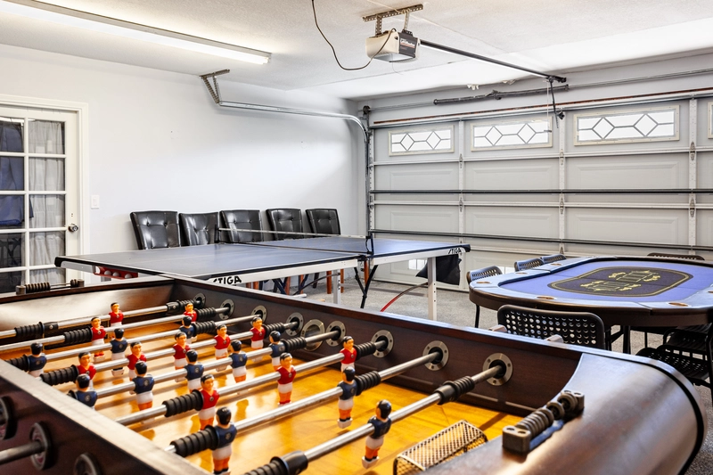 Why This House is Fun: The collection of table games, including pool, ping pong, foosball, and a poker table, creates an entertainment center where families actually interact. The game room features classic table games that bring multiple generations together.
